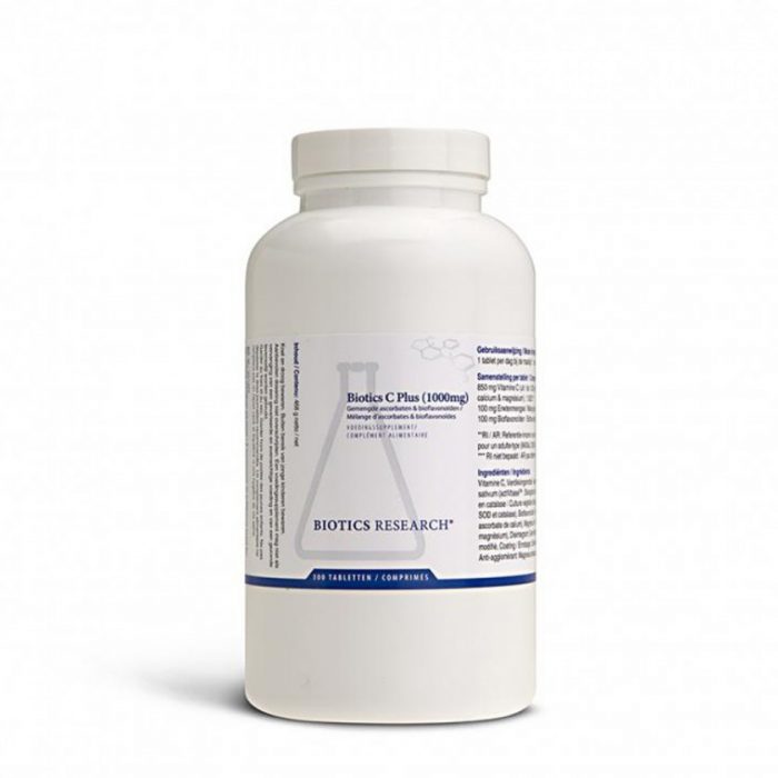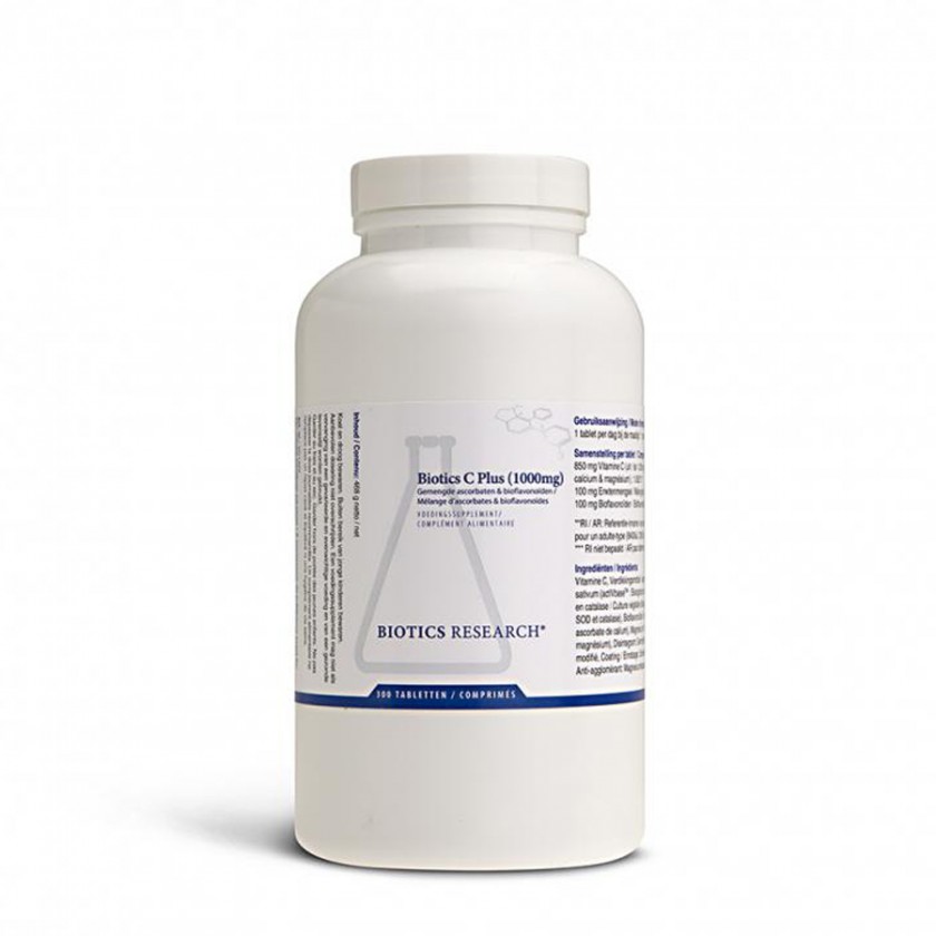 Bio-C Plus 1000™ fornisce vitamina C (come ascorbati di calcio e magnesio), insieme a calcio e magnesio come ascorbati minerali, oltre a bioflavonoidi di agrumi (agrumi), Superossido Dismutasi (da coltura vegetale) e Catalasi (da coltura vegetale) ). A dosaggi più elevati è meno probabile che gli ascorbati misti causino disturbi digestivi rispetto all’acido ascorbico. Utilizzare ovunque sia determinato il fabbisogno di vitamina C.